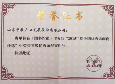 (山東中教產(chǎn)業(yè)發(fā)展股份有限公司評選為“省級優(yōu)秀館配商”)
