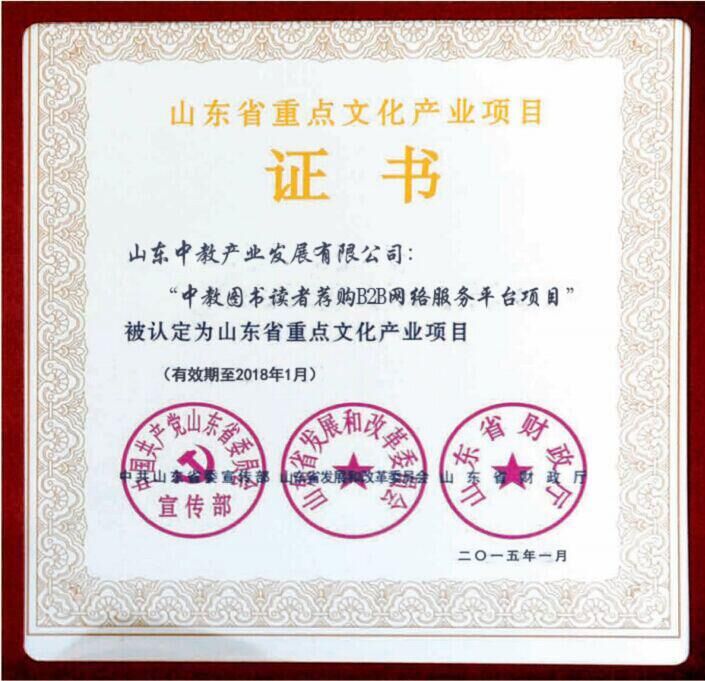 :山東省重點(diǎn)文化產(chǎn)業(yè)項(xiàng)目證書