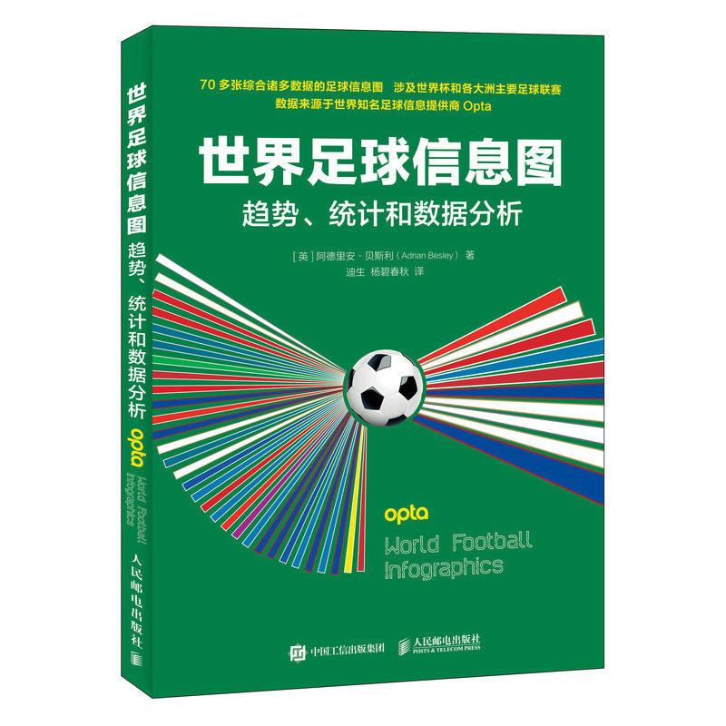 本書用精彩的筆觸,展現(xiàn)了足球悠久的歷史,以時(shí)下流行的信息圖形式,整合歐洲知名體育數(shù)據(jù)公司Opta的數(shù)據(jù),以具有深度的可視化圖表,帶領(lǐng)讀者走進(jìn)足球世界,了解足球的方方面面。這些數(shù)據(jù)涉及國際足聯(lián)舉辦的世界杯、各大洲的球賽、知名俱樂部的各類賽事。你還可以看到球員、球隊(duì)和聯(lián)賽之間的比較;球隊(duì)的表現(xiàn)、陣型的變化與教練的謀略;同身體 部位所打入的世界杯進(jìn)球;精彩進(jìn)球和點(diǎn)球完美落點(diǎn)的分析,甚至還能看到不同身體部位所打入的世界杯進(jìn)球統(tǒng)計(jì);歷屆世界足球先生的進(jìn)球數(shù)據(jù),還有梅西與C羅的王者之爭…… 復(fù)雜的信息,匠心的圖表,讓你徜徉在大數(shù)據(jù)中,體會(huì)足球之美。