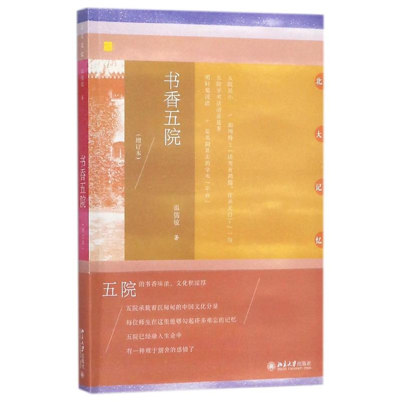 《書香五院(增訂本)》屬于面對2018年北大校慶的“北大記憶叢書”,收入北京大學中文系溫儒敏教授近年來的散文隨筆,主要分為三個部分:**部分是對北大中文系故人往事的追憶和思懷;第二部分是作者在北大求學、生活、教學及行政工作的自述,另有作者在中文系諸次印新畢業(yè)等儀式上對學生們的講話發(fā)言;第三部分則為近年來作者關于中小學語文教育的專題文章,相關文章廣受社會關注。