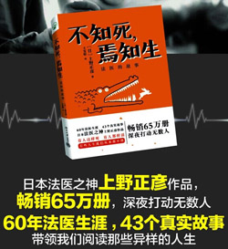 60年法醫(yī)生涯 ,43個(gè)真實(shí)故事。日本法醫(yī)之神上野正彥作品,暢銷(xiāo)65萬(wàn)冊(cè), 深夜打動(dòng)無(wú)數(shù)人。有人這樣死, 有人那樣活,有些人生我們從來(lái)都不懂。本書(shū)是日本首席法醫(yī)上野正彥將60年法醫(yī)生涯濃縮成43個(gè)真實(shí)故事,用質(zhì)樸卻不失風(fēng)趣的文字,為我們呈現(xiàn)出一幕幕與死亡相關(guān)的悲喜劇,深深打動(dòng)了無(wú)數(shù)人:被殘忍殺害的小孩子眼中最后的景象,被子下被凍死的老人臨終前的孤獨(dú),用身體做盾牌保護(hù)愛(ài)子的偉大母愛(ài)。