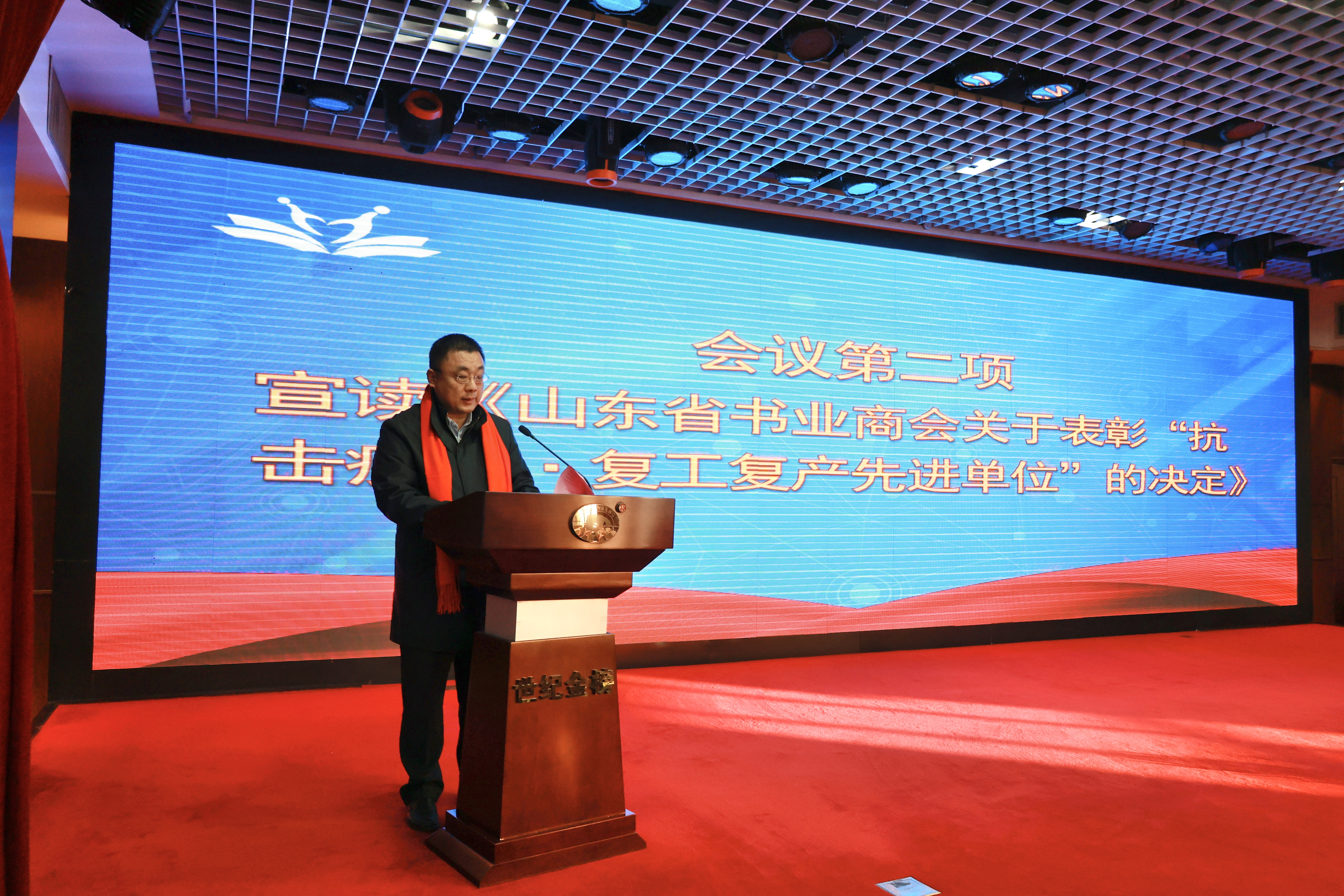 商會(huì)常務(wù)副會(huì)長(zhǎng)魏立文宣讀了《山東省書業(yè)商會(huì)關(guān)于表彰“抗擊疫情·復(fù)工復(fù)產(chǎn)先進(jìn)單位”的決定》,山東中教產(chǎn)業(yè)發(fā)展集團(tuán)股份有限公司等15家單位憑借在抗擊疫情、復(fù)工復(fù)產(chǎn)中的突出作為和優(yōu)異成績(jī),榮獲“抗擊疫情·復(fù)工復(fù)產(chǎn)先進(jìn)單位”稱號(hào)。