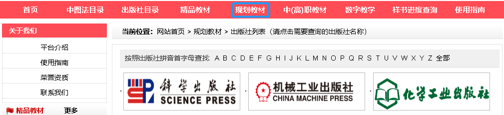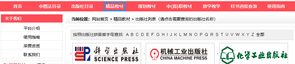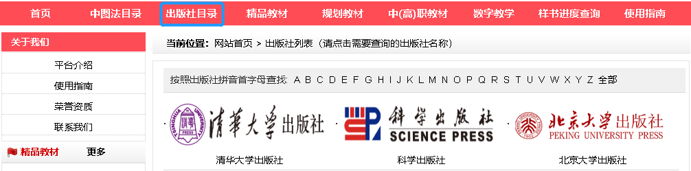 方式二 點(diǎn)擊出版社目錄,根據(jù)出版社查找。如下圖: