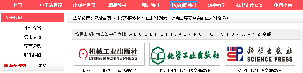 (3)點(diǎn)擊高職中職教材,查找出版社高職中職系列教材。如下圖: