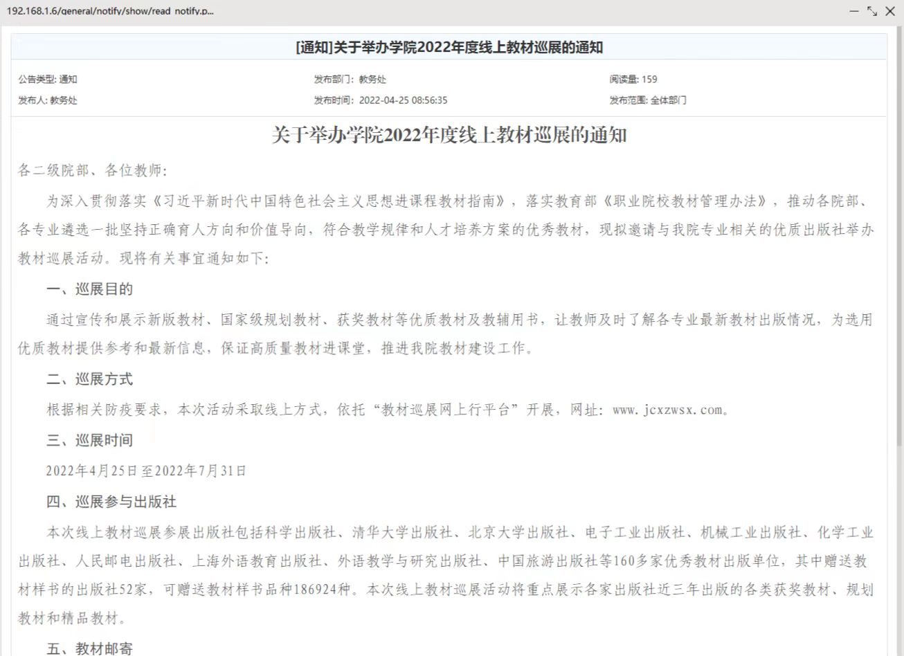 為深入貫徹落實(shí)《習(xí)近平新時(shí)代中國(guó)特色社會(huì)主義思想進(jìn)課程教材指南》,落實(shí)教育部《職業(yè)院校教材管理辦法》,方便各學(xué)校遴選教材,選擇一批適宜教學(xué),符合本校人才培養(yǎng)方案、教學(xué)計(jì)劃和教學(xué)大綱要求的優(yōu)秀教材,“2022全國(guó)教材巡展網(wǎng)上行” 教材云巡展活動(dòng)第四站——青島酒店管理職業(yè)技術(shù)學(xué)院站于4月25日正式啟動(dòng)。根據(jù)相關(guān)防疫要求,本次活動(dòng)采取線上(教材云巡展)方式進(jìn)行。