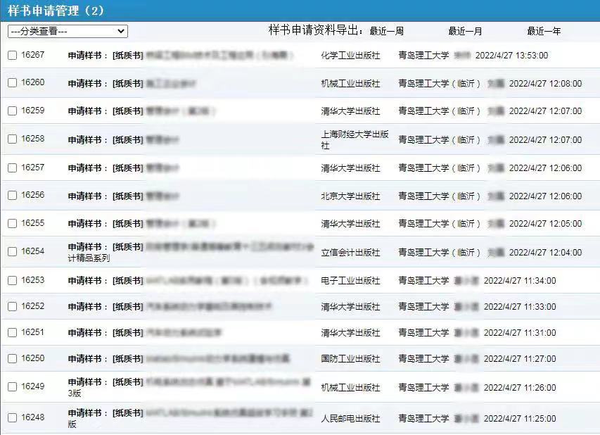 教材郵寄:線上巡展期間,每家出版社均可申請(qǐng)1-2本教材樣書(shū)(在線填表后郵寄)。有出版意向教師和有教學(xué)資源建設(shè)方面需求的學(xué)院可以與教材巡展網(wǎng)上行平臺(tái)聯(lián)系,也可在填寫(xiě)樣書(shū)申請(qǐng)單時(shí)備注。