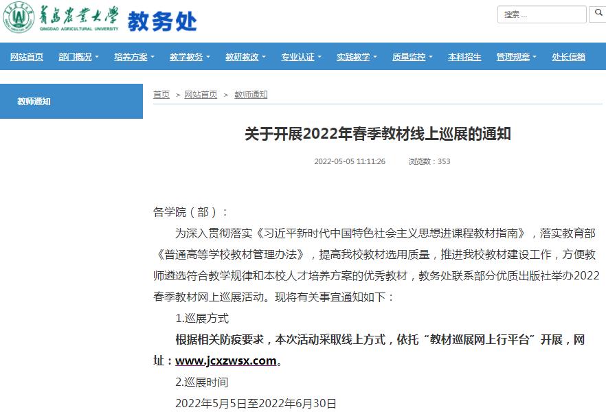 第十四站—青島農(nóng)業(yè)大學(xué)|“2022全國教材巡展網(wǎng)上行”教材云巡展活動于5月5日在線上啟動