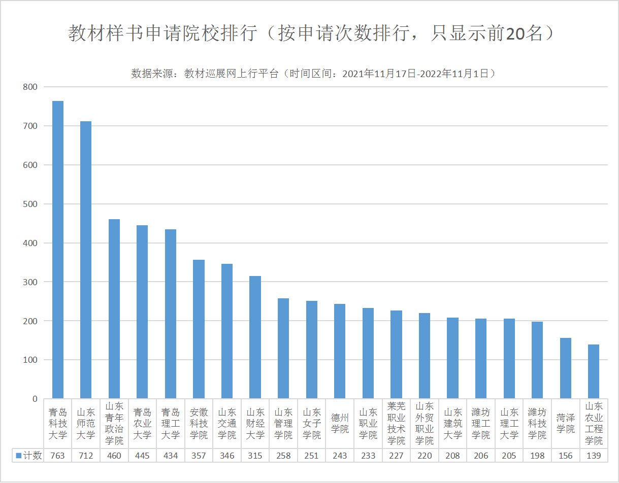 2021年11月17日,“2022全國教材巡展網(wǎng)上行”正式拉開帷幕。 本次活動依托于“教材巡展網(wǎng)上行”(www.jcxzwsx.com)服務(wù)平臺,聯(lián)合科學(xué)出版社、清華大學(xué)出版社、北京大學(xué)出版社、電子工業(yè)出版社、化學(xué)工業(yè)出版社、機械工業(yè)出版社、人民郵電出版社、人民交通出版社、上海外語教育出版社、外語教學(xué)與研究出版社、北京師范大學(xué)出版社、復(fù)旦大學(xué)出版社、國防工業(yè)出版社等160多家以教材出版為主的出版社,并得到了學(xué)校教材管理服務(wù)部門的大力支持,打造出一條連接出版社和各學(xué)科任課老師的教材信息交流通道,為各學(xué)科任課老師的教材選用、教材樣書免費申請、自編教材的出版等方面提供優(yōu)質(zhì)的服務(wù)。 “2022全國教材巡展網(wǎng)上行”上線以來,得到了高校教材管理部門及出版社同仁的大力支持及肯定,在此我們深表感謝。為了滿足學(xué)校和出版社的要求,從2021年11月17日開始我們定時播報教材巡展網(wǎng)上行的各類數(shù)據(jù)統(tǒng)計,并保證數(shù)據(jù)的真實性和有效性。 截止到2022年11月1日14時(統(tǒng)計區(qū)間:2021年11月17日0時-2022年11月1日14時) 訪問/展示數(shù)據(jù): 教材巡展網(wǎng)上行平臺頁面訪問數(shù)(PV):384397次 IP訪問數(shù):134382次 參會出版社參展品種:372254種 可贈送教材樣書品種:186924種 目前平臺上參展出版社160多家,其中贈送教材樣書的出版社53家(見下圖,均為綜合類出版大社及以教材出版為主的專業(yè)出版社)