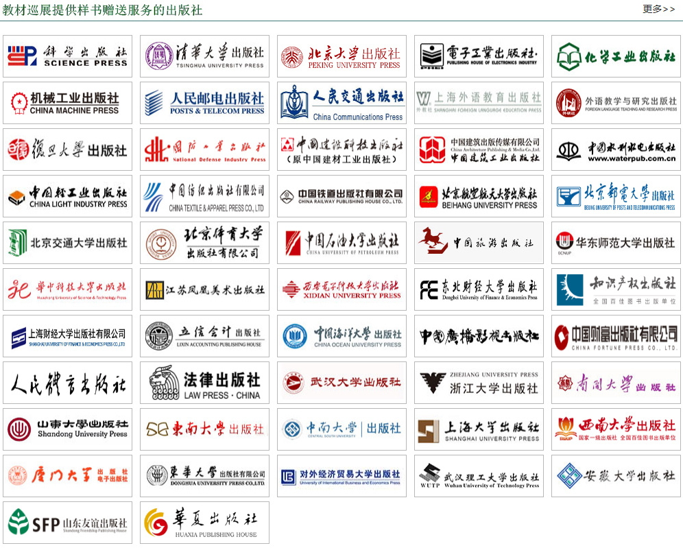 以上為參與教材樣書(shū)贈(zèng)送的52家出版社圖標(biāo) 參與教材樣書(shū)申請(qǐng)學(xué)校共:249所 教材樣書(shū)申請(qǐng)次數(shù):2066次