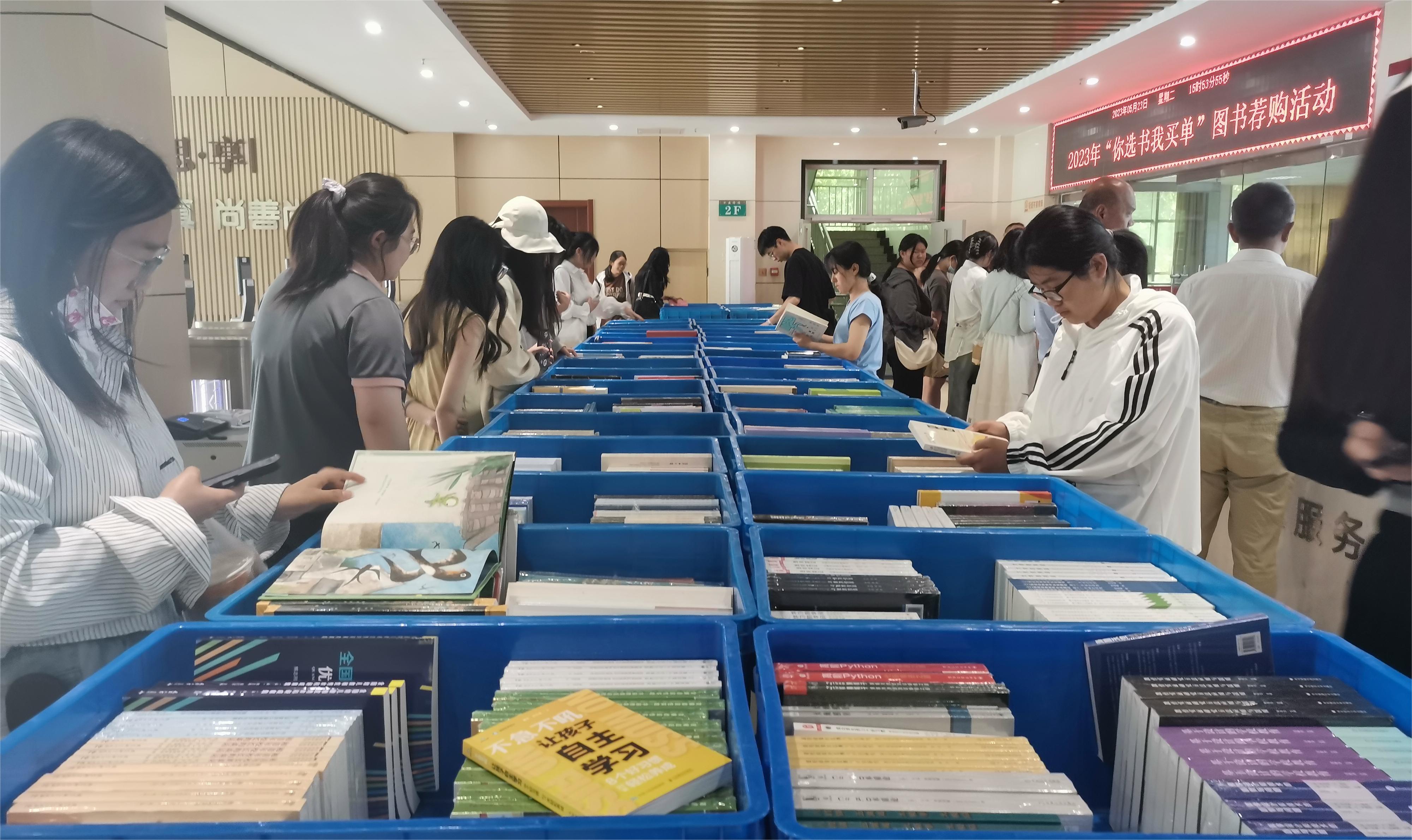 為倡導(dǎo)全民閱讀,推動(dòng)學(xué)!皶(shū)香校園”建設(shè),滿(mǎn)足讀者個(gè)性化、多元化的閱讀需求,提高館藏圖書(shū)的可讀性,充分調(diào)動(dòng)師生參與館藏資源建設(shè)的積極性,加強(qiáng)圖書(shū)館與讀者之間的互動(dòng)交流,真正實(shí)現(xiàn)讀者與圖書(shū)之間的零距離薦購(gòu)和借閱,由淄博師范高等專(zhuān)科學(xué)校圖書(shū)館與山東中教產(chǎn)業(yè)發(fā)展股份有限公司共同舉辦的“你選書(shū) 我買(mǎi)單”線上線下圖書(shū)薦購(gòu)活動(dòng)5月23日在淄博師范高等專(zhuān)科學(xué)校成功舉辦。