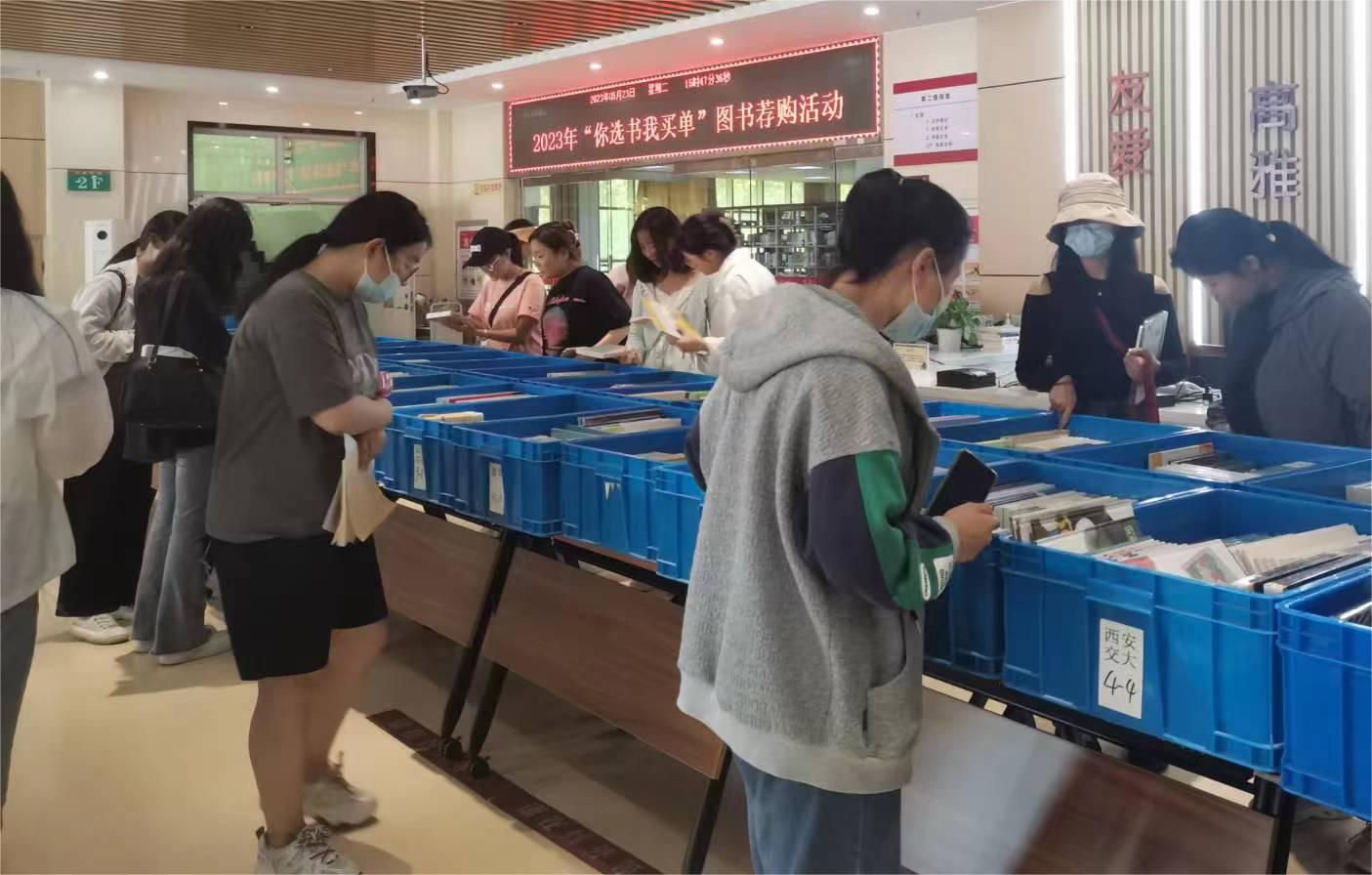 本次活動(dòng),在舉辦形式上采用了線上線下融合進(jìn)行的模式。對(duì)于因場(chǎng)地、時(shí)間限制未能參與線下讀者薦購(gòu)活動(dòng)的老師和同學(xué),均可通過(guò)網(wǎng)上館配會(huì)讀者薦購(gòu)平臺(tái)參與圖書(shū)薦購(gòu)活動(dòng)。在活動(dòng)現(xiàn)場(chǎng),根據(jù)學(xué)校館藏特色、專(zhuān)業(yè)設(shè)置,組織精品紙本圖書(shū)4000余冊(cè)供師生現(xiàn)場(chǎng)選擇,“網(wǎng)上館配會(huì)薦購(gòu)選采服務(wù)平臺(tái)”提供國(guó)內(nèi)500余家出版社同步發(fā)行的100萬(wàn)余種圖書(shū)數(shù)據(jù)供師生線上(網(wǎng)上)薦購(gòu)。師生們既可通過(guò)網(wǎng)上館配會(huì)讀者薦購(gòu)平臺(tái)進(jìn)行網(wǎng)上圖書(shū)推薦,也可以現(xiàn)場(chǎng)挑選薦購(gòu),所薦購(gòu)圖書(shū)經(jīng)圖書(shū)館采編部門(mén)審核通過(guò)后,將納入學(xué)校圖書(shū)館館藏。 師生們對(duì)線上線下融合舉辦的模式表現(xiàn)出了極大的參與熱情,現(xiàn)場(chǎng)氣氛十分熱烈,大家對(duì)本次活動(dòng)給予了充分的肯定。師生們紛紛表示,圖書(shū)推薦活動(dòng)促進(jìn)了讀者與圖書(shū)館的互動(dòng),在現(xiàn)場(chǎng)活動(dòng)結(jié)束后大家將繼續(xù)通過(guò)網(wǎng)上館配會(huì)讀者薦購(gòu)平臺(tái)向圖書(shū)館推薦圖書(shū)。