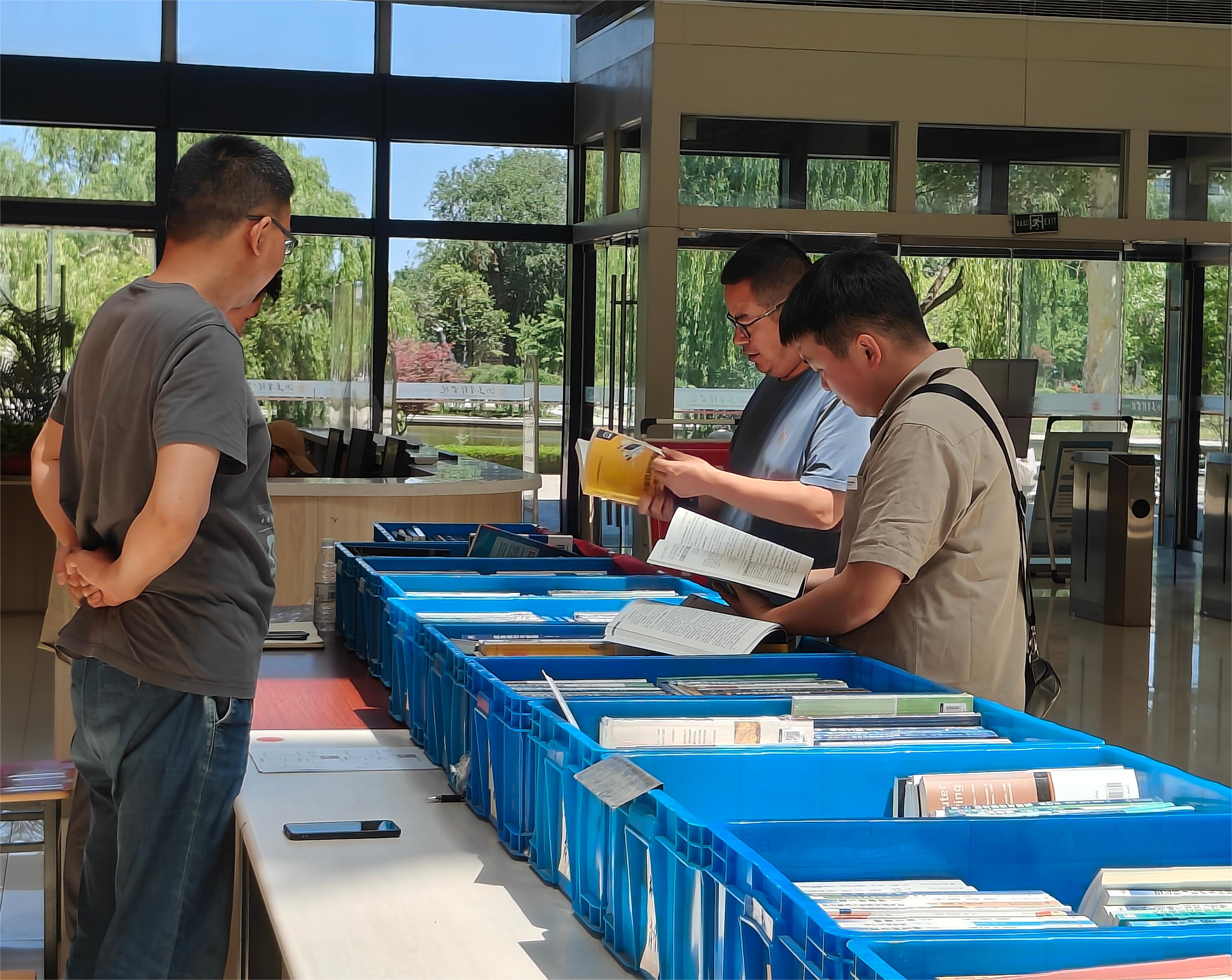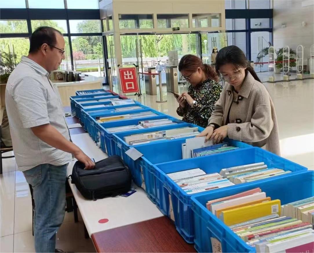 ▷ 學(xué)校老師們認(rèn)真挑選教材樣書 教材巡展線上線下活動旨在打造出一條連接出版社和各學(xué)科任課老師的教材信息交流通道,為各學(xué)科任課老師的教材選用、教材樣書免費申請、自編教材的出版等方面提供優(yōu)質(zhì)的服務(wù),充分發(fā)揮教材“培根鑄魂、啟智增慧”的作用。 |