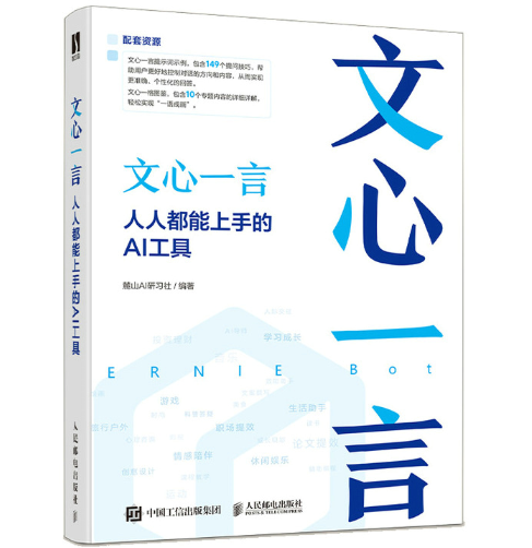 內(nèi)容簡介:本書作為文心一言的學(xué)習(xí)指南,全面、細(xì)致地介紹了文心一言PC端和App的各項(xiàng)功能和使用方法,力求通過簡潔明了的語言和圖文并茂的形式,讓讀者快速掌握文心一言的各項(xiàng)功能。 全書共8章,首先簡單介紹了人工智能發(fā)展的幾個階段及文心一言的相關(guān)研發(fā)背景;隨后介紹了文心一言的基礎(chǔ)頁面及功能等內(nèi)容,以及文心一言在學(xué)習(xí)、工作、生活娛樂方面的應(yīng)用及相關(guān)案例;接著介紹了文心一言的插件,以及文心一言App的功能和使用技巧;最后介紹了百度旗下其他AI產(chǎn)品(文心一格和百度智能云·一念)的功能及使用方法。