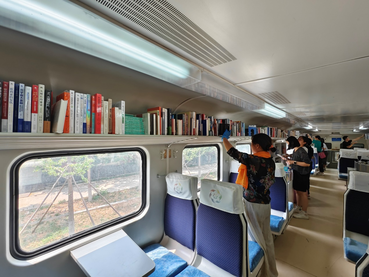 場景2---山東職業(yè)學(xué)院“山梔花開”書驛站。選采地址:山東省濟南市經(jīng)十東路23000號山東職業(yè)學(xué)院白、綠火車車廂內(nèi)。