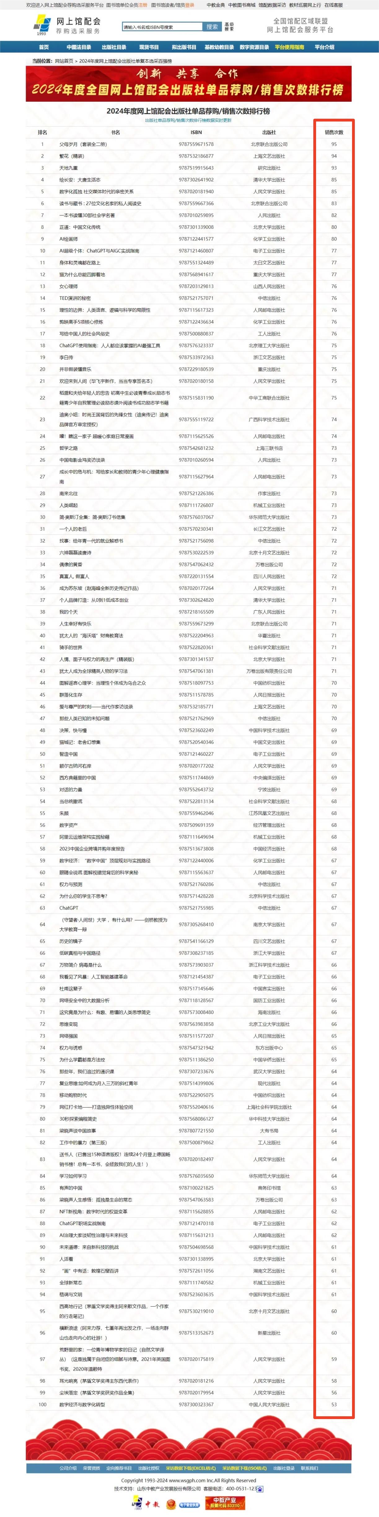 2. 出版社單品薦購/銷售次數(shù)排行榜