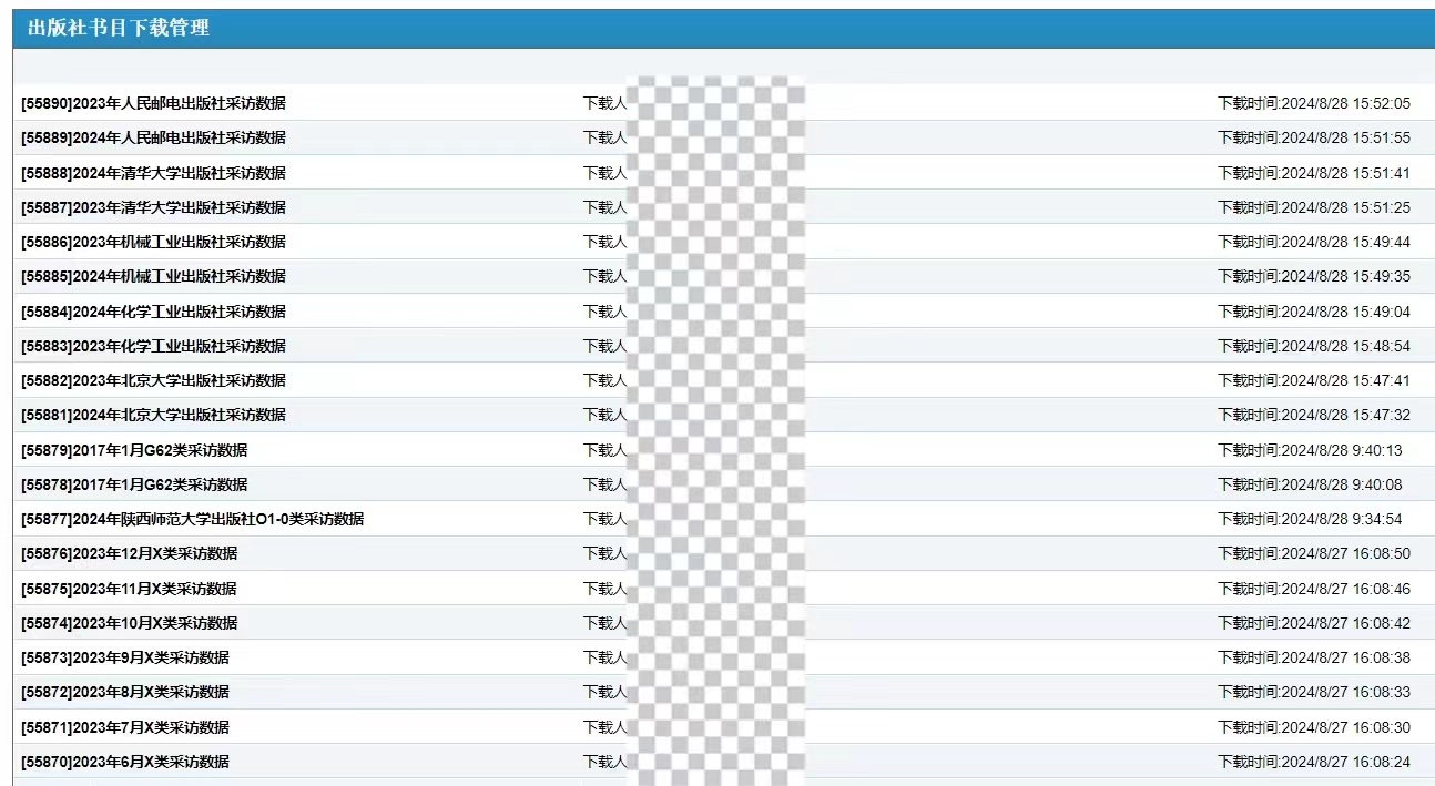 【說明】以上數(shù)據(jù)列表圖中,涉及到用戶隱私信息的部分,均已做模糊處理。 目前,網(wǎng)上館配會平臺(www.wsgph.com)已與全國89家重點出版社實現(xiàn)了可供書目的EDI適時對接,與500多家出版社(商)實現(xiàn)了可供書目的模版15天對接,出版社可供書目數(shù)據(jù)與網(wǎng)上館配會服務(wù)平臺書目數(shù)據(jù)實現(xiàn)了同步。目前,平臺已有100多萬條紙質(zhì)書和電子書的可供書目數(shù)據(jù)以及11萬多條紙電同步的可供書目數(shù)據(jù)供圖書館和讀者薦購/選采。平臺強大的資源整合能力和海量的同步數(shù)據(jù),對出版社可供書目的時效性、全面性,以及圖書館的到書率,提供了有效保障! 在此,希望還沒有實現(xiàn)EDI數(shù)據(jù)對接的出版社,能夠充分認(rèn)識到EDI數(shù)據(jù)對接在館配服務(wù)工作中的便捷性和重要性,從而早日實現(xiàn)出版社可供書目的EDI數(shù)據(jù)對接。 另外,在加快數(shù)據(jù)同步速度的同時,希望所有出版社完善圖書產(chǎn)品在直播間的播放種類,增加圖書視頻資料在平臺的播放頻次,以便更好的服務(wù)于圖書館選采工作。對于還沒有參加2024全國網(wǎng)上館配會的部分出版社,如有意向,請抓緊與平臺客服聯(lián)系。 我們期待更多的圖書館、出版社同仁使用“網(wǎng)上館配會”平臺(www.wsgph.com)。