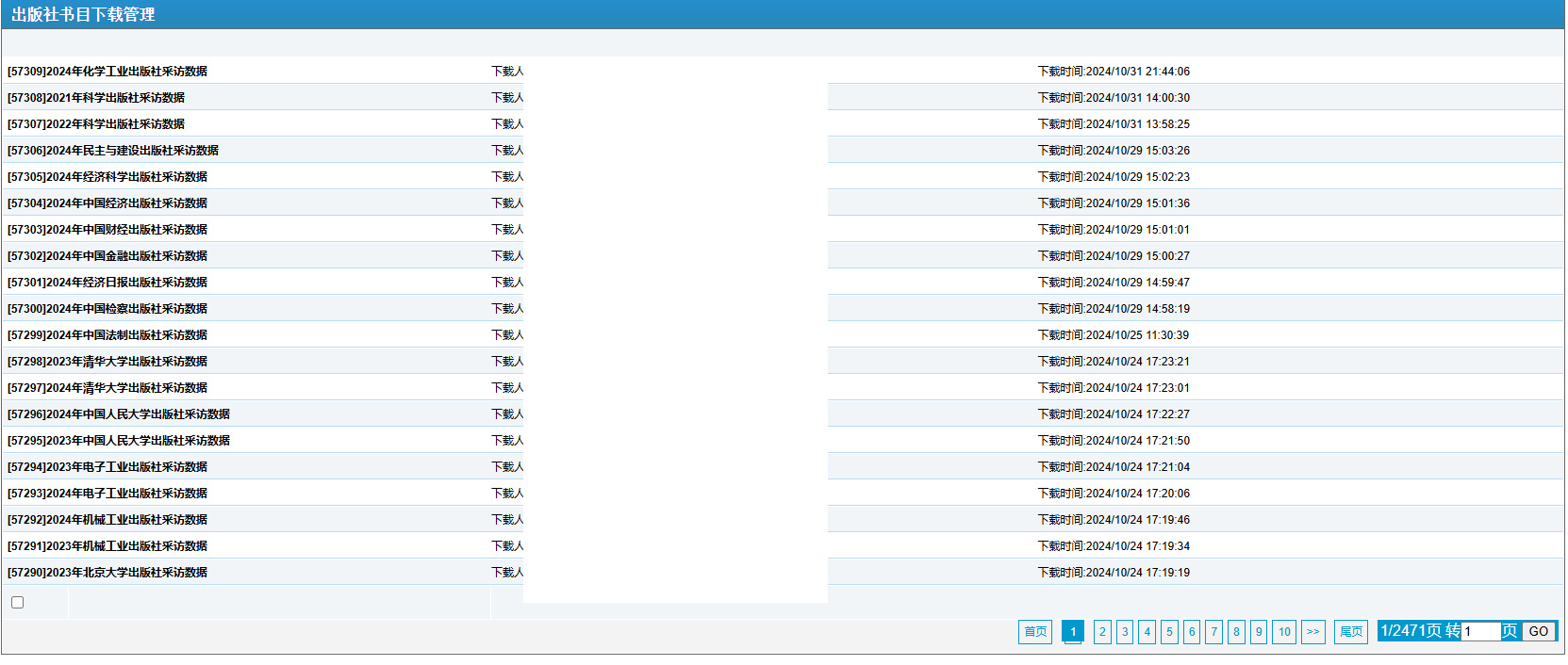 【說明】以上數(shù)據(jù)列表圖中,涉及到用戶隱私信息的部分,均已做模糊處理。 目前,網(wǎng)上館配會平臺(www.wsgph.com)已與全國89家重點(diǎn)出版社實(shí)現(xiàn)了可供書目的EDI適時對接,與500多家出版社(商)實(shí)現(xiàn)了可供書目的模版15天對接,出版社可供書目數(shù)據(jù)與網(wǎng)上館配會服務(wù)平臺書目數(shù)據(jù)實(shí)現(xiàn)了同步。目前,平臺已有100多萬條紙質(zhì)書和電子書的可供書目數(shù)據(jù)以及11萬多條紙電同步的可供書目數(shù)據(jù)供圖書館和讀者薦購/選采。平臺強(qiáng)大的資源整合能力和海量的同步數(shù)據(jù),對出版社可供書目的時效性、全面性,以及圖書館的到書率,提供了有效保障! 在此,希望還沒有實(shí)現(xiàn)EDI數(shù)據(jù)對接的出版社,能夠充分認(rèn)識到EDI數(shù)據(jù)對接在館配服務(wù)工作中的便捷性和重要性,從而早日實(shí)現(xiàn)出版社可供書目的EDI數(shù)據(jù)對接。 另外,在加快數(shù)據(jù)同步速度的同時,希望所有出版社完善圖書產(chǎn)品在直播間的播放種類,增加圖書視頻資料在平臺的播放頻次,以便更好的服務(wù)于圖書館選采工作。對于還沒有參加2024全國網(wǎng)上館配會的部分出版社,如有意向,請抓緊與平臺客服聯(lián)系。 我們期待更多的圖書館、出版社同仁使用“網(wǎng)上館配會”平臺(www.wsgph.com)。