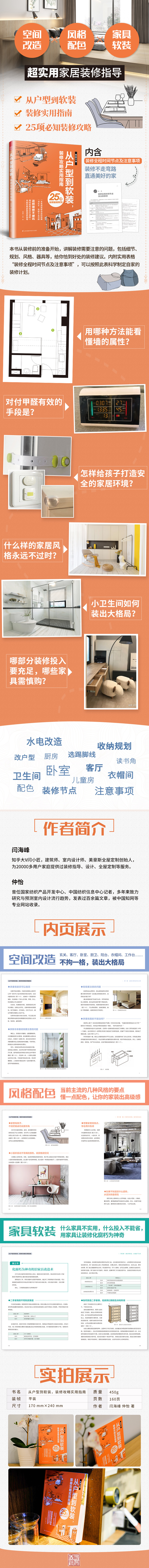 本書分為四部分:第一章為“裝修時(shí)要做好的功課”,主要講裝修時(shí)有哪些地方需要注意,著重于細(xì)節(jié);第二章為“空間的妙手安排”,從臥室、客廳、玄關(guān)、廚房、衛(wèi)生間、陽(yáng)臺(tái)等分區(qū)入手,分別講解各功能區(qū)的一些裝修要點(diǎn)和建議;第三章為“懂一點(diǎn)配色和風(fēng)格,提升家的品味”,主要從風(fēng)格和配色入手,講解各種風(fēng)格的注意事項(xiàng);第四章為“要住得舒適,從器具下功夫”,主要講述有哪些實(shí)用好看的家具、部件,以及個(gè)別家具有哪些地方不盡如人意,需要謹(jǐn)慎購(gòu)買。