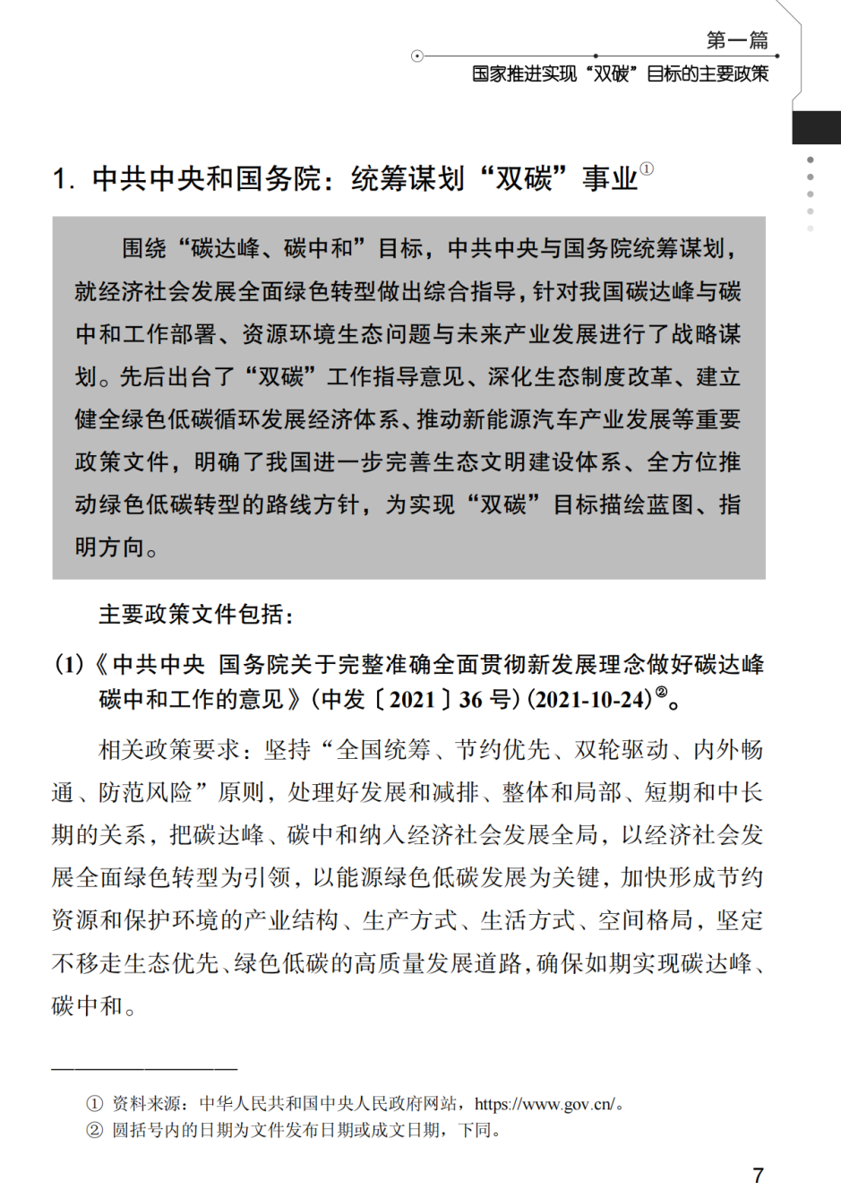 第一篇 國家推進實現(xiàn)“雙碳”目標的主要政策