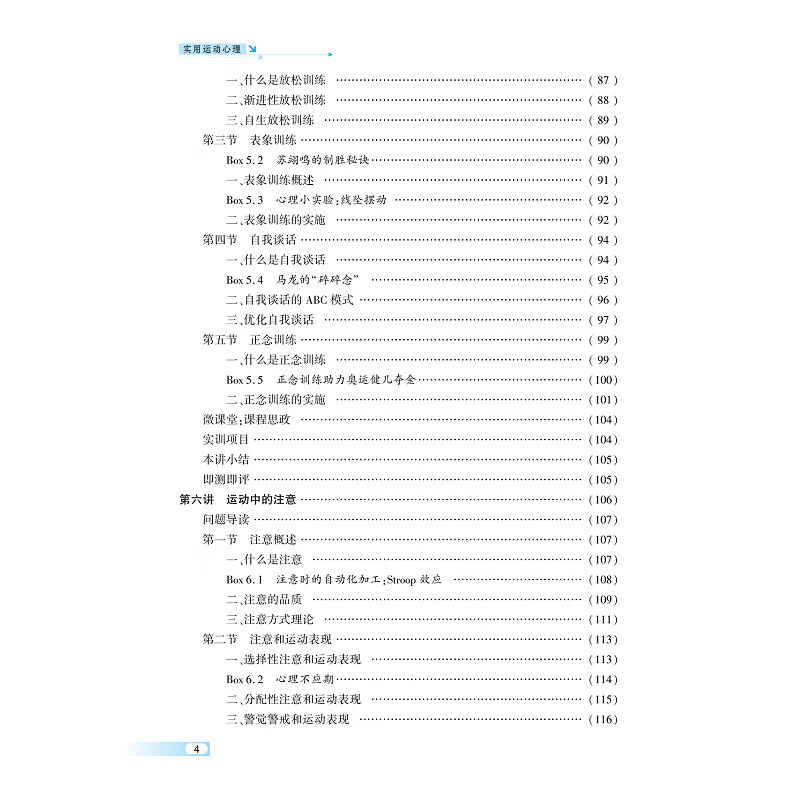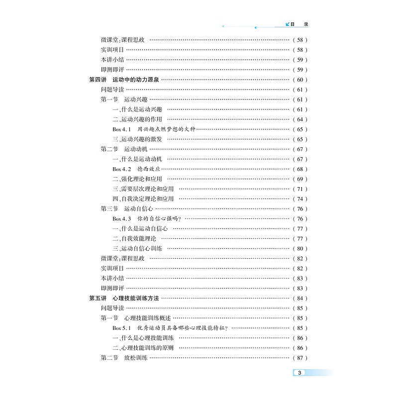 本教材按照高職教育“必須、夠用”的理論教學(xué)原則,以及專業(yè)人才培養(yǎng)目標(biāo)和崗位能力需求,設(shè)計(jì)了由選材心理、訓(xùn)練心理和比賽心理三大模塊構(gòu)成的運(yùn)動(dòng)心理學(xué)課程理論教學(xué)內(nèi)容,并編排了運(yùn)動(dòng)心理學(xué)實(shí)驗(yàn)和運(yùn)動(dòng)心理學(xué)量表的實(shí)踐教學(xué)內(nèi)容。在《運(yùn)動(dòng)心理學(xué)》教材的基礎(chǔ)上,補(bǔ)充了最新資料,增加了教學(xué)視頻、上課課件和課后練習(xí)題答案的二維碼鏈接,有利于學(xué)生的輕松學(xué)習(xí)。