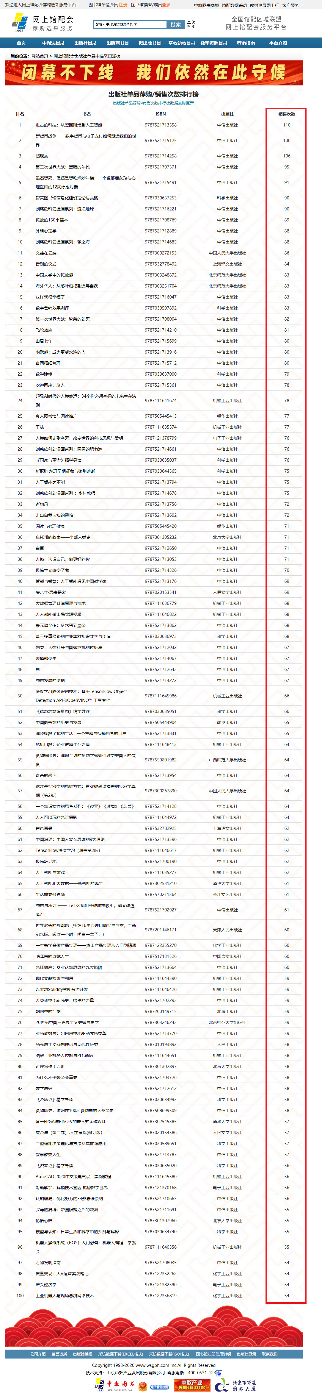 出版社單品薦購/銷售次數(shù)排行榜