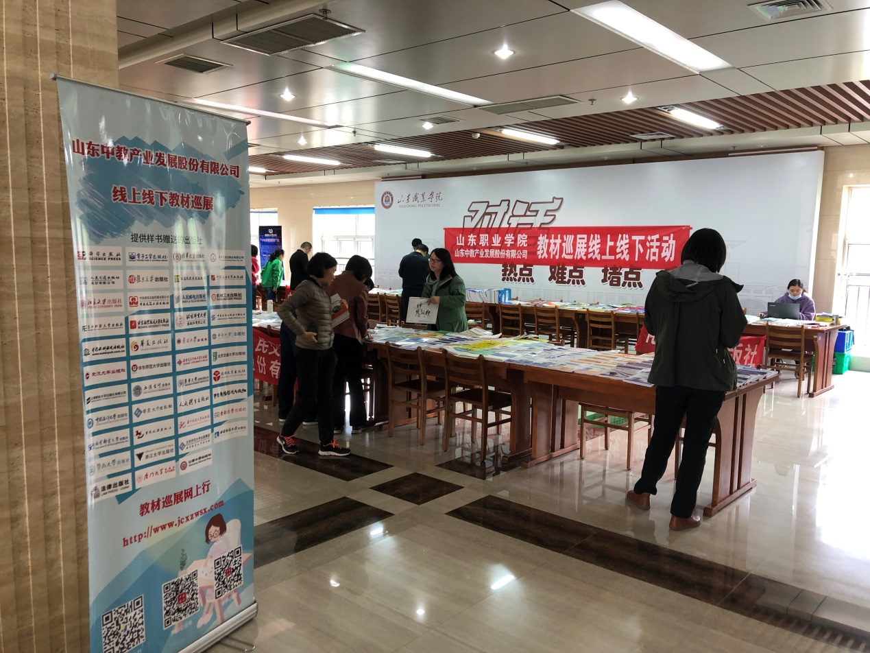為深入貫徹實施教育部《普通高等學校教材管理辦法》和《職業(yè)院校教材管理辦法》,方便各學校遴選教材,選擇一批適宜教學,符合本校人才培養(yǎng)方案、教學計劃和教學大綱要求的優(yōu)秀教材,“2021全國教材巡展網(wǎng)上行”線上線下巡展活動第五站于4月22日在山東職業(yè)學院成功舉辦。 本活動依托于“教材巡展網(wǎng)上行”(www.jcxzwsx.com)服務平臺,參加本站線下巡展的出版社有科學出版社、電子工業(yè)出版社、清華大學出版社、化學工業(yè)出版社、人民交通出版社、機械工業(yè)出版社、復旦大學出版社、江蘇鳳凰美術出版社、中國石油大學出版社、北京理工大學出版社、濟南出版社等。現(xiàn)場重點展示了各家出版社近三年出版的各類獲獎教材、規(guī)劃教材和精品教材3200多種。對于無法到現(xiàn)場選書的老師可登陸教材巡展網(wǎng)上行(www.jcxzwsx.com)申請所需教材樣書。本次教材巡展線上參展出版社164多家,其中贈送教材樣書的出版社43家,可贈送教材樣書品種170170種。