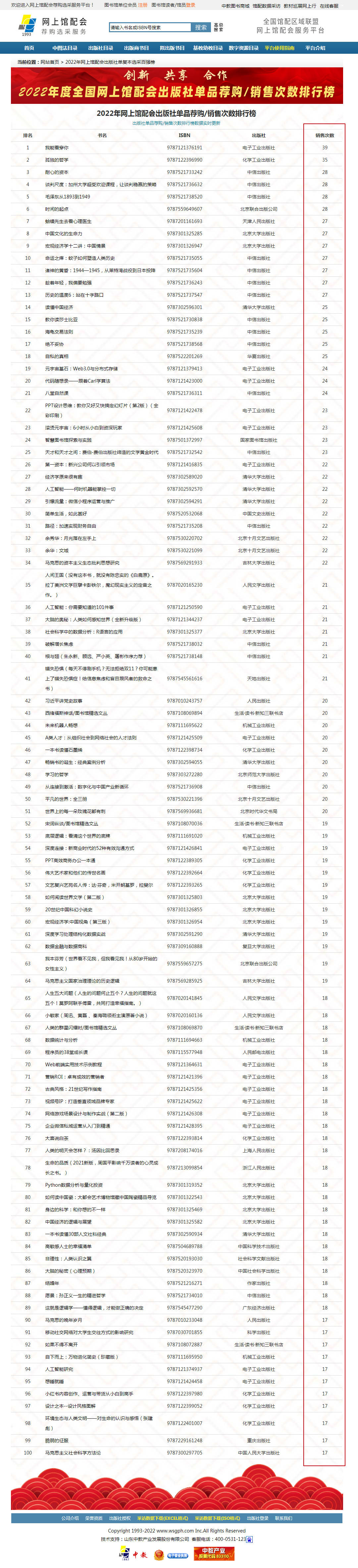 2.出版社單品薦購/銷售次數(shù)排行榜