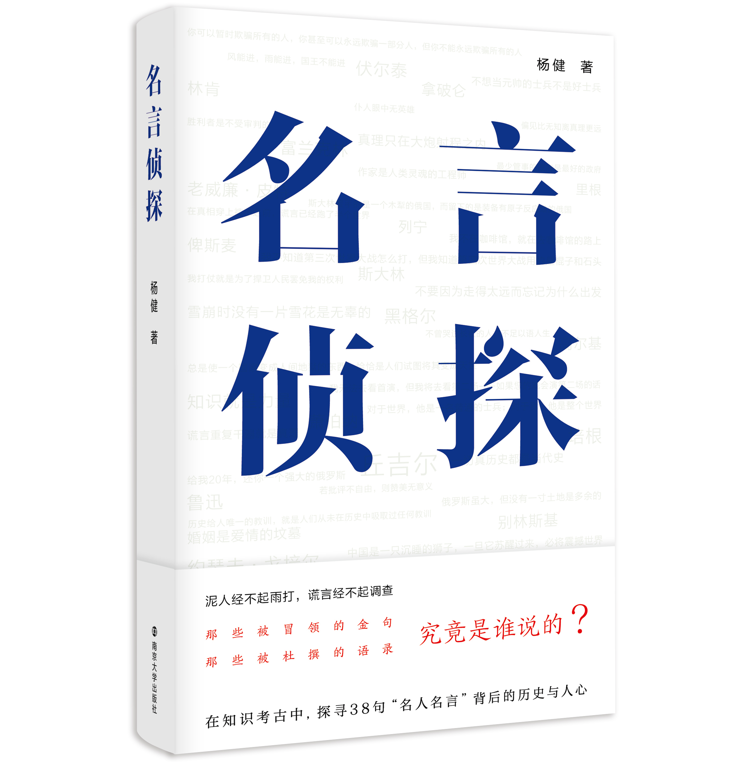 內(nèi)容簡(jiǎn)介:本書是國(guó)內(nèi)第一部探究“名人名言”真?zhèn)蔚闹。作者考察了近年來在中?guó)知識(shí)界、朋友圈流傳甚廣的38句“名人名言”,顛覆了人們?cè)械恼J(rèn)知,考察結(jié)果有時(shí)讓人目瞪口呆。如“中國(guó)是一只沉睡的獅子,一旦它蘇醒,必將震撼世界”“歷史給人唯一的教訓(xùn),就是人們從未在歷史中吸取過任何教訓(xùn)”“一千個(gè)人眼中有一千個(gè)哈姆雷特”……這些美麗的句子究竟是誰(shuí)說的?作者在對(duì)文獻(xiàn)資料的核查、辨析中,梳理了這些“名人名言”被錯(cuò)置、謬傳、誤讀的知識(shí)脈絡(luò)、歷史線索和傳播路徑?梢哉f,這是作者憑有限的一己之力所做的一次驚心動(dòng)魄的知識(shí)考古。