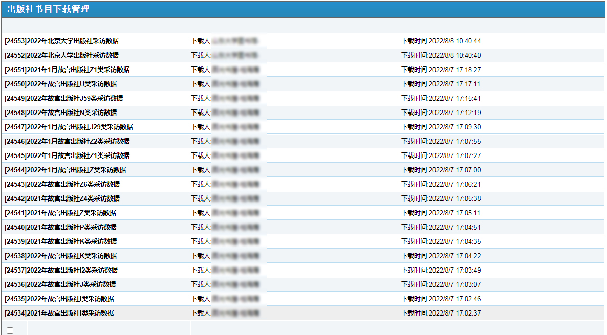 【說明】以上數據列表圖中,涉及到用戶隱私信息的部分,均已做模糊處理。 目前,網上館配會平臺(www.wsgph.com)已與全國79家重點出版社實現(xiàn)了可供書目的EDI適時對接,與近500家出版社實現(xiàn)了可供書目的模版15天對接,出版社可供書目數據與網上館配會服務平臺書目數據實現(xiàn)了同步。目前,平臺已有100多萬條可供書目數據,便于圖書館和讀者薦購/選采。平臺強大的資源整合能力和海量的同步數據,對出版社可供書目的時效性、全面性,以及圖書館的到書率,提供了有效保障! 在此,希望還沒有實現(xiàn)EDI數據對接的出版社,能夠充分認識到EDI數據對接在館配服務工作中的便捷性和重要性,從而早日實現(xiàn)出版社可供書目的EDI數據對接。 另外,在加快數據同步速度的同時,希望所有出版社完善圖書產品在直播間的播放種類,增加圖書視頻資料在平臺的播放頻次,以便更好的服務于圖書館選采工作。對于還沒有參加2022全國網上館配會的部分出版社,如有意向,請抓緊與平臺客服聯(lián)系。 我們期待更多的圖書館、出版社同仁使用“網上館配會”平臺(www.wsgph.com)。