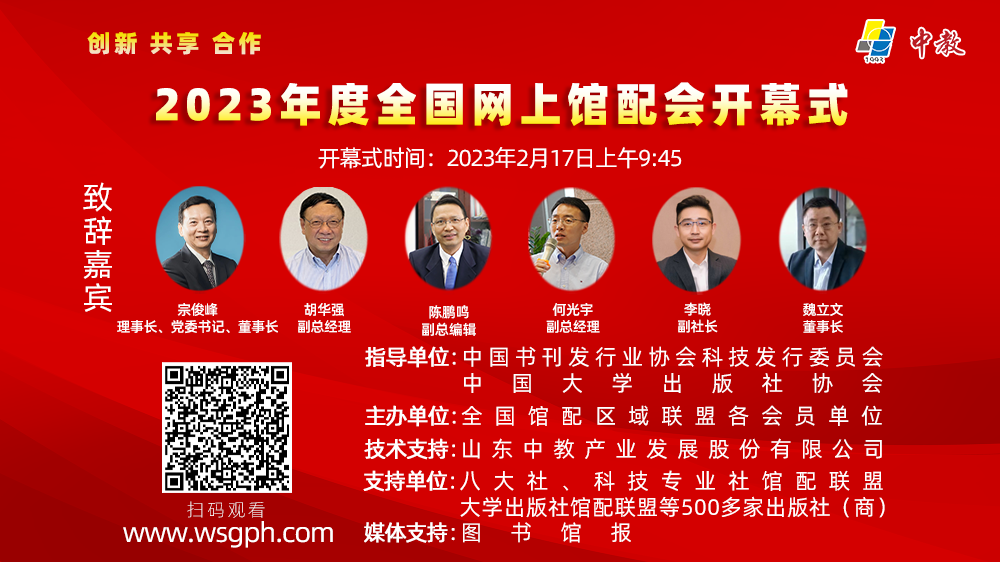 會議時間:2023年2月17日舉行開幕式 2023年1月1日--2023年12月31日全年常態(tài)化服務(wù) 指導(dǎo)單位:中國書刊發(fā)行業(yè)協(xié)會科技發(fā)行委員會 中國大學(xué)出版社協(xié)會 支持單位:八大社 科技專業(yè)社館配聯(lián)盟 大學(xué)出版社館配聯(lián)盟等500多家出版社(商) 主辦單位:全國館配區(qū)域聯(lián)盟各成員單位共同主辦 技術(shù)支持:山東中教產(chǎn)業(yè)發(fā)展股份有限公司 媒體支持:圖書館報 圖書品種:全國500多家出版單位的近百萬條可供書目數(shù)據(jù) 線上網(wǎng)址:www.wsgph.com