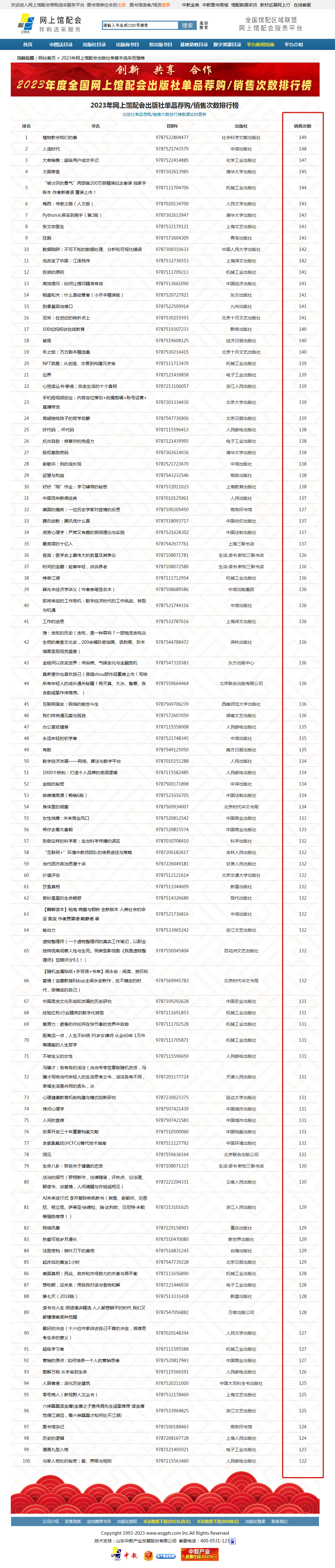 2.出版社單品薦購/銷售次數(shù)排行榜