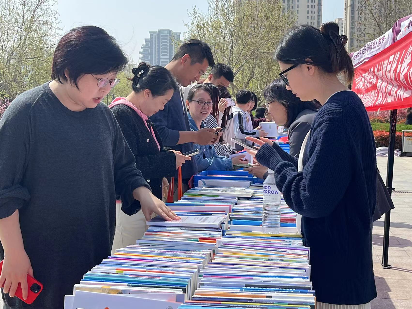▷ 老師們認真挑選教材樣書 教材巡展線上線下活動旨在打造出一條連接出版社和各學科任課老師的教材信息交流通道,為各學科任課老師的教材選用、教材樣書免費申請、自編教材的出版等方面提供優(yōu)質(zhì)的服務,充分發(fā)揮教材“培根鑄魂、啟智增慧”的作用。 |