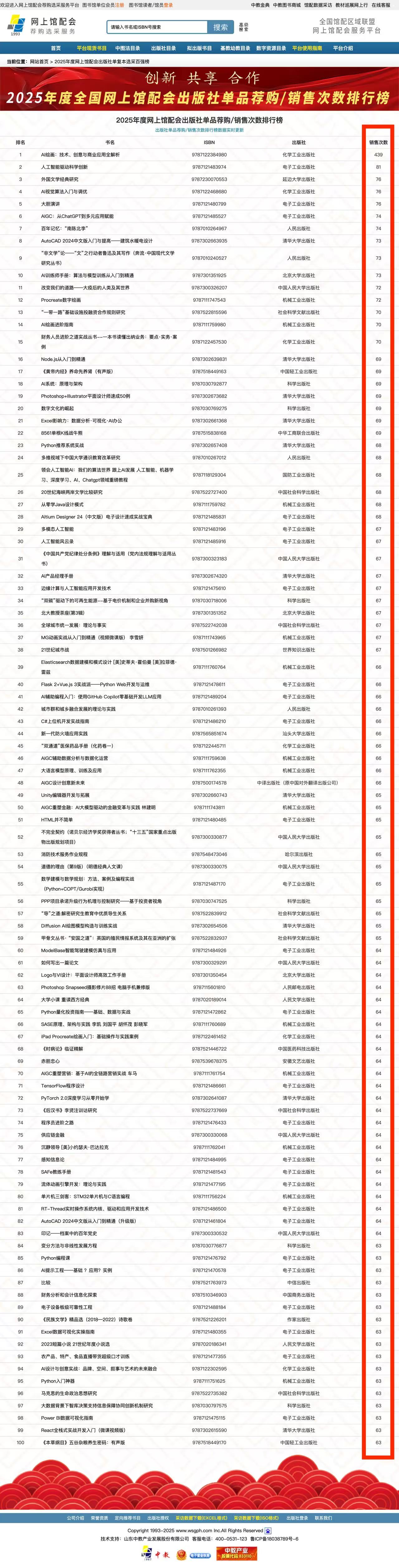 2. 出版社單品薦購/銷售次數(shù)排行榜