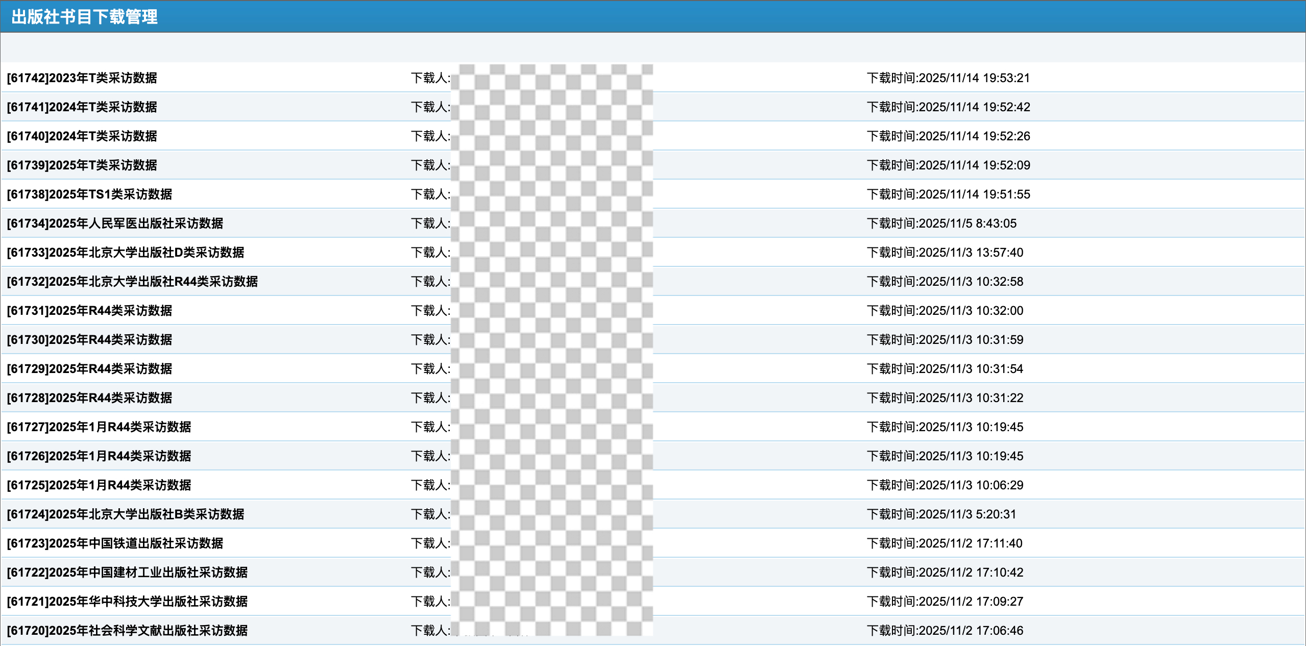 【說明】以上數(shù)據(jù)列表圖中,涉及到用戶隱私信息的部分,均已做模糊處理。 目前,網(wǎng)上館配會平臺(www.wsgph.com)已與全國90家重點出版社實現(xiàn)了可供書目的電子數(shù)據(jù)交換(EDI)實時對接,與500多家出版社(商)實現(xiàn)了可供書目的模版數(shù)據(jù)15天對接,實現(xiàn)了出版社可供書目數(shù)據(jù)與網(wǎng)上館配會服務(wù)平臺書目數(shù)據(jù)的同步。平臺現(xiàn)有全國592家出版單位的140多萬條紙質(zhì)書可供書目數(shù)據(jù)以及11萬多條電子書和紙電同步的可供書目數(shù)據(jù)供圖書館和讀者實施薦購、選采和分類下載,強(qiáng)大的資源整合能力和海量同步數(shù)據(jù)為出版社可供書目時效性和全面性及圖書館到書率提供了有效保障。 在此,希望還沒有實現(xiàn)EDI數(shù)據(jù)對接的出版社,能夠充分認(rèn)識到EDI數(shù)據(jù)對接在館配服務(wù)工作中的便捷性和重要性,從而早日實現(xiàn)出版社可供書目的EDI數(shù)據(jù)對接。 另外,在加快數(shù)據(jù)同步速度的同時,希望所有出版社完善圖書產(chǎn)品在直播間的播放種類,增加圖書視頻資料在平臺的播放頻次,以便更好的服務(wù)于圖書館選采工作。對于還沒有參加2025全國網(wǎng)上館配會的部分出版社,如有意向,請抓緊與平臺客服聯(lián)系。 我們期待更多的圖書館、出版社同仁使用“網(wǎng)上館配會”平臺(www.wsgph.com)。
